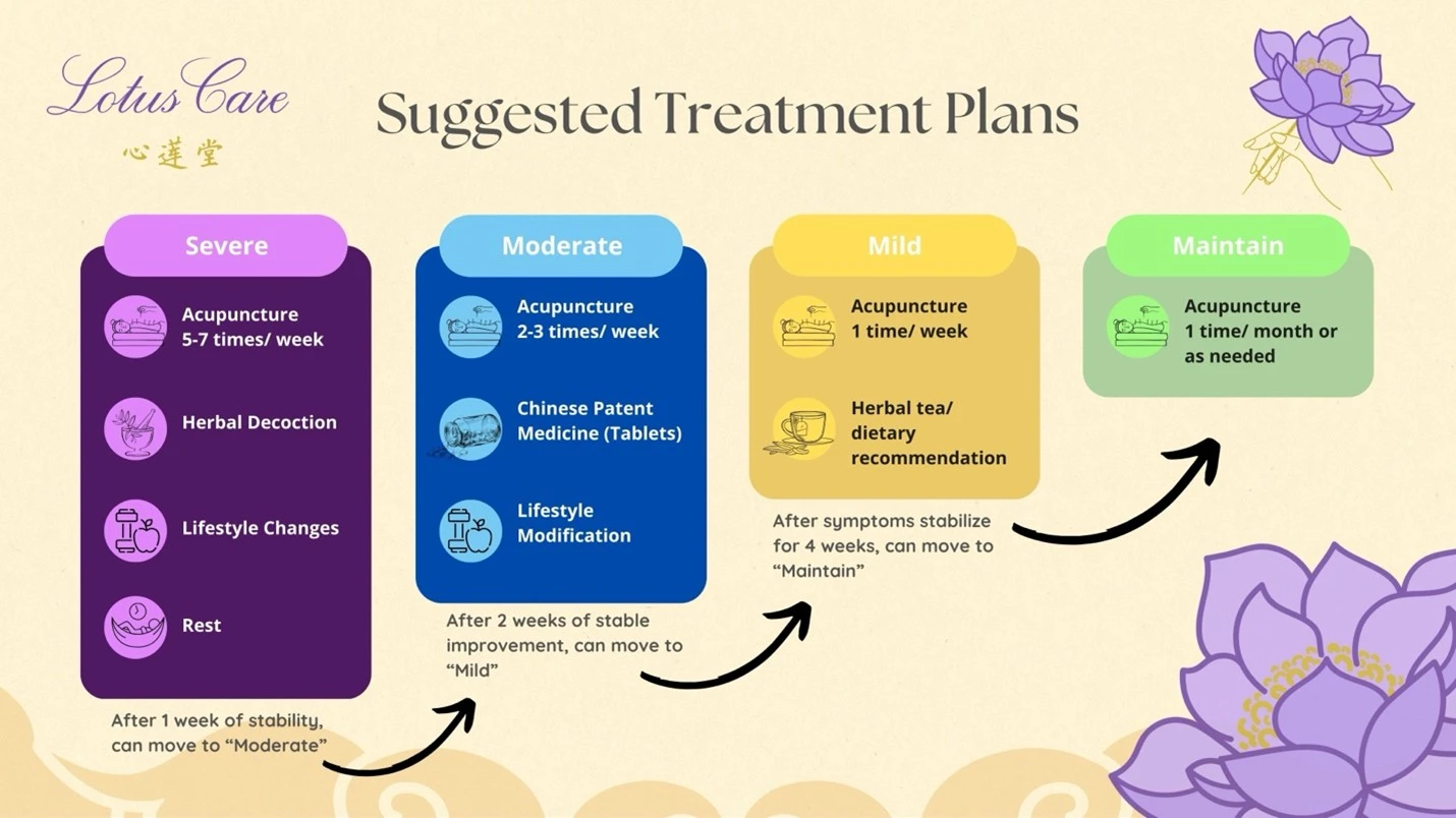 - Severe Imbalance: Intensive acupuncture sessions (up to three times a week), potent herbal treatments, and comprehensive lifestyle coaching.